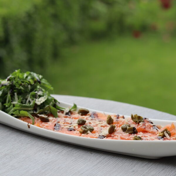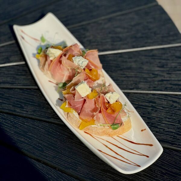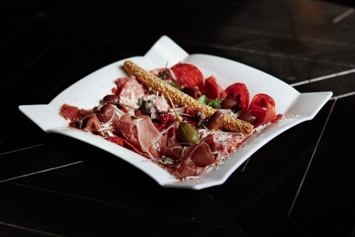 Вибір італійських делікатесів: салямі Наполі та Мілано, чорізо, шинка та прошуто. Подається з в’яленими томатами, оливками, каперсами та грісіні.