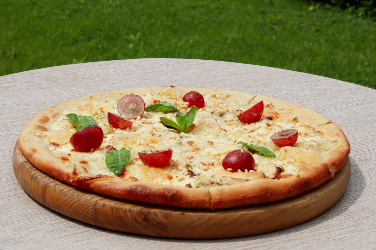 Класична італійська піца з чотирма сирами: моцарела, дорблю, пармезан і брі. Вершкова основа, тягучий сир і насичений смак. Вага 450 г