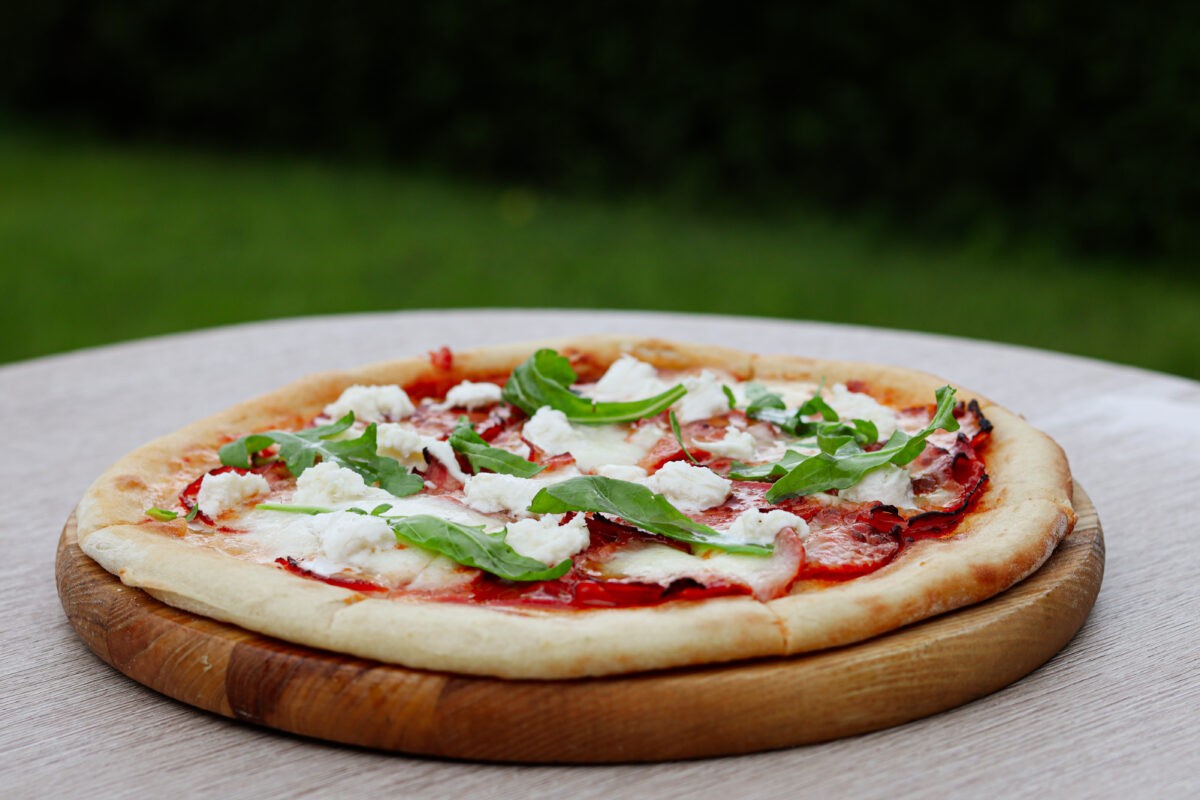 Тонке тісто з томатним соусом, моцарелою, пармезаном і пікантною ковбасою Чорізо. Вага 450 г